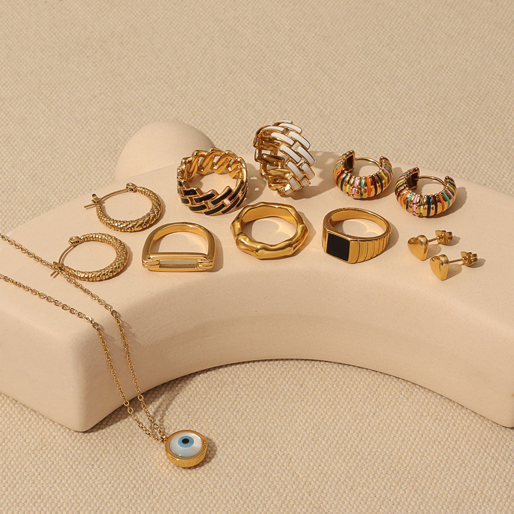 Lattice Band Ring – Gold (Black/White)